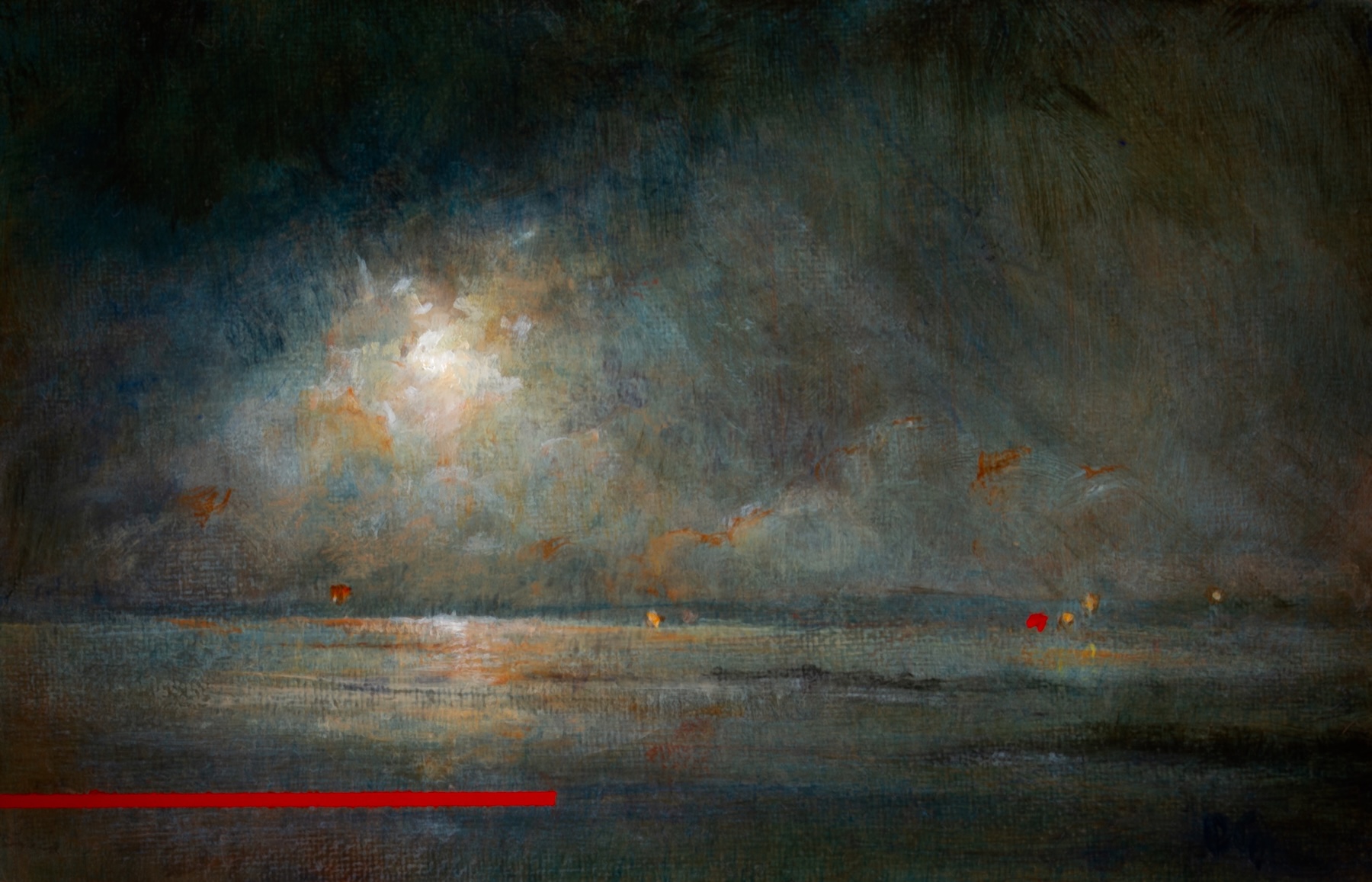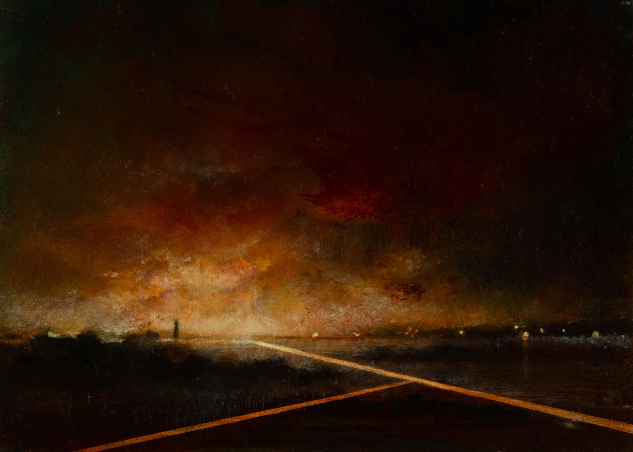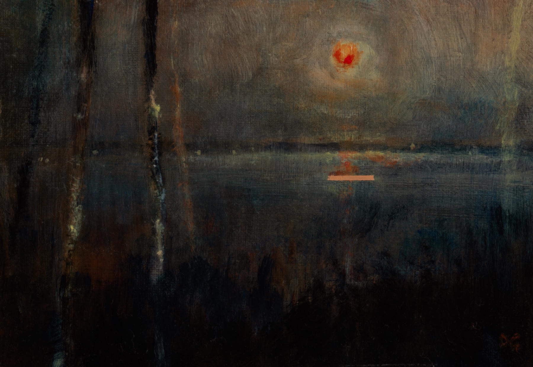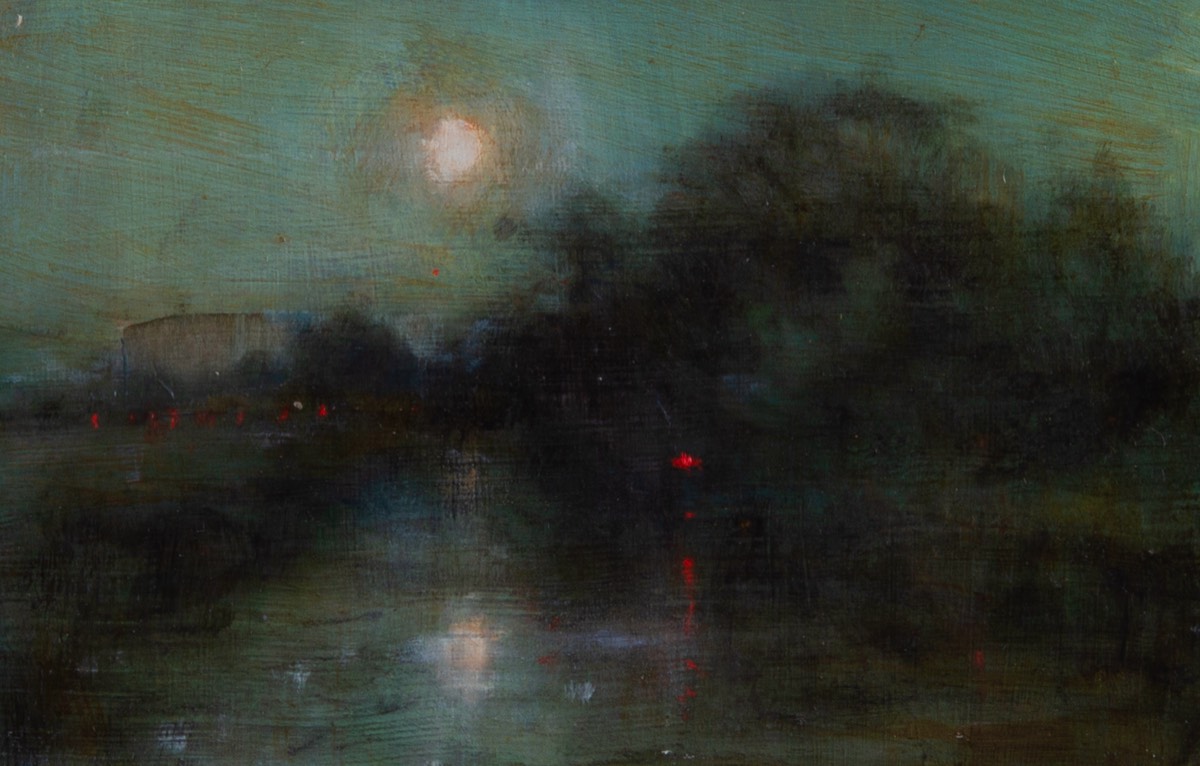 My inspiration is drawn from the aesthetics of the nineteenth century romantic landscape painters. By appropriating their visual tropes, I lure the viewer into a sense of familiarity. When I am painting I have Victorian period interiors, with their nooks and love of gallery wall hanging styles.