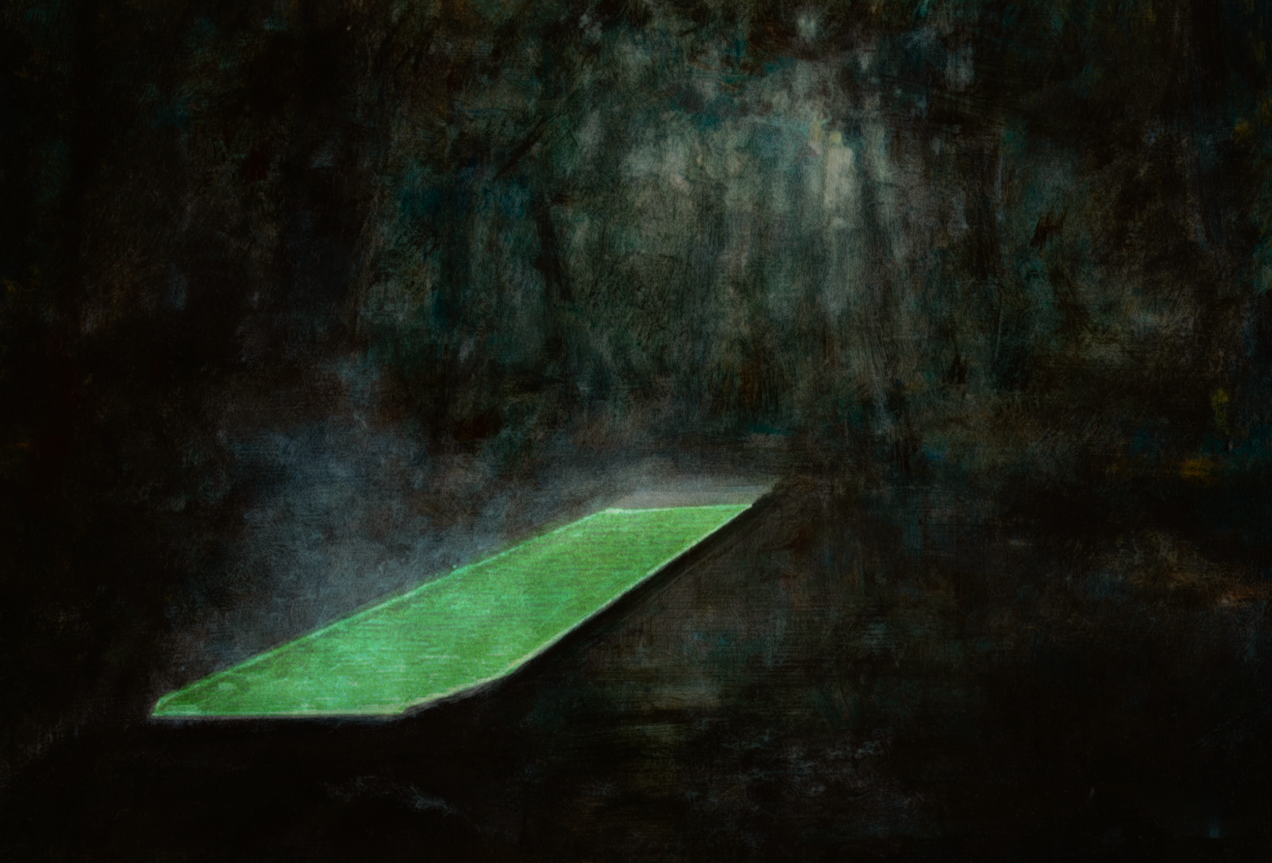 My inspiration is drawn from the philosophy and aesthetics of the nineteenth century romantic landscape painters. By appropriating their visual tropes, I lure the viewer into a sense of familiarity.